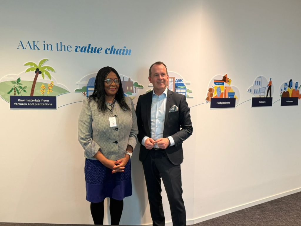 Her Excellency Ambassador Dr. Margaret Miewien Chebere, Ghana’s Ambassador to Denmark, paid a courtesy visit to AAK’s global headquarters in Malmo, Sweden. The meeting focused on exploring opportunities for increased collaboration between AAK, an industry leader in shea butter processing and Ghanaian stakeholders, including potential supply-chain partnerships, investment prospects, and skills transfer initiatives.